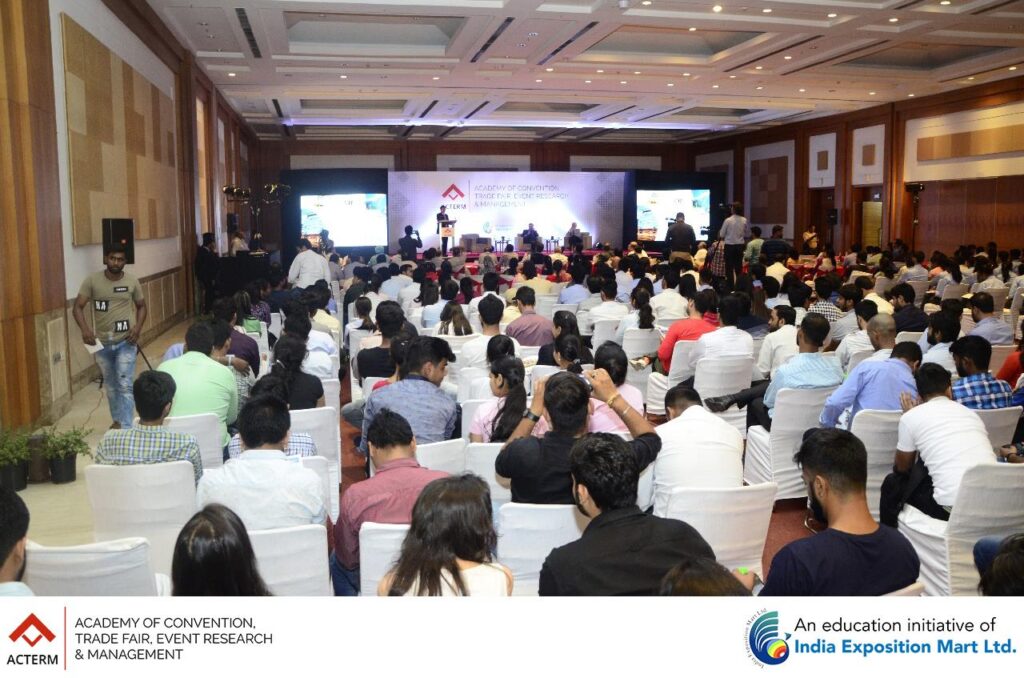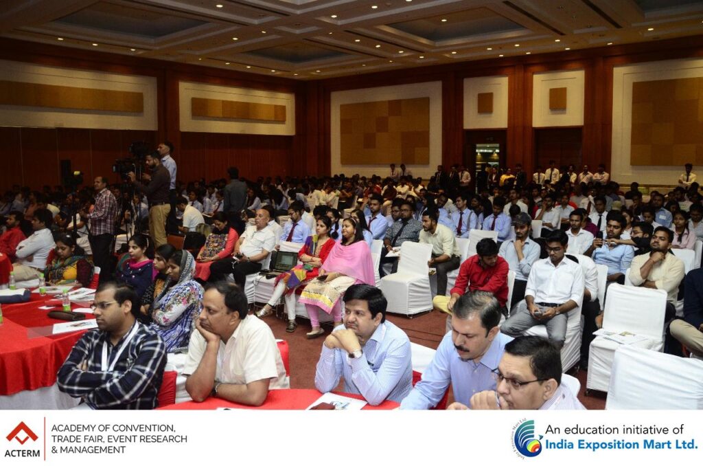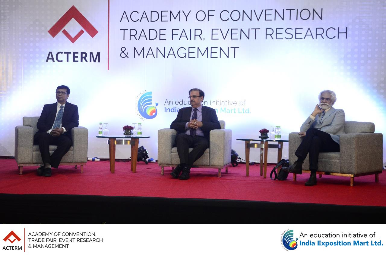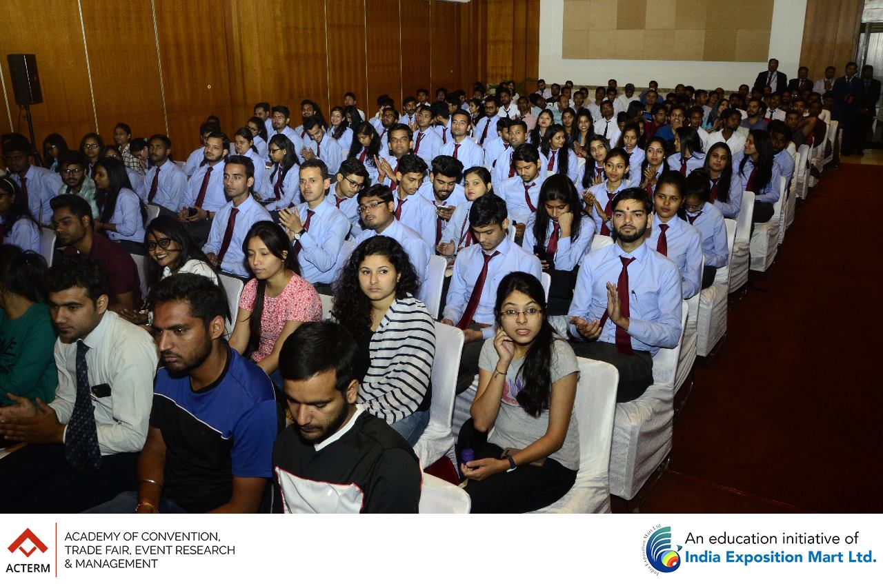 The Grand Launch of ACTERM (Academy of Convention, Trade Fair, Event Research & Management), an initiative of India Exposition Mart Ltd was a tremendous success. Over 500 students and 75 faculty members from 20 colleges of Greater Noida and Noida were present for the launch. The session was addressed by Mr. Rakesh Kumar, Chairman, India Expo Centre (sitting at the centre), Mr. Sunil Sethi, President (Academics) (sitting at the right), ACTERM and Mr. Pinakie Kansabanik, Dean, ACTERM (sitting at the left).