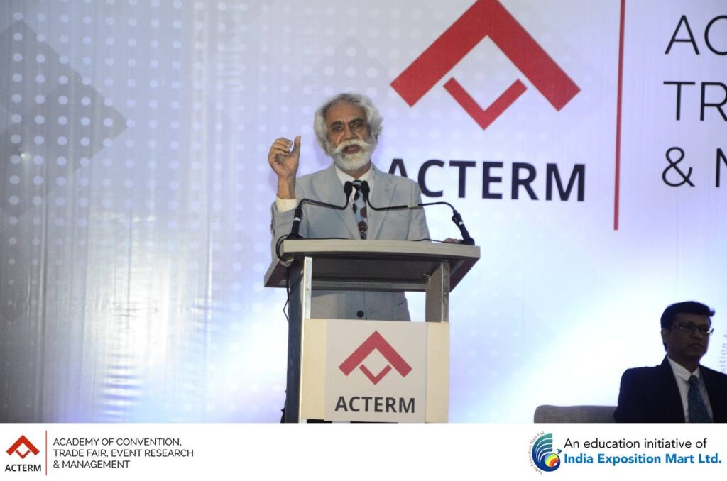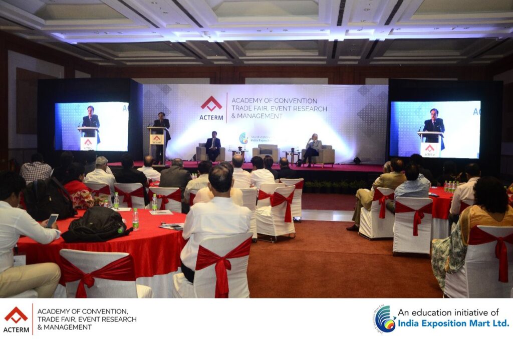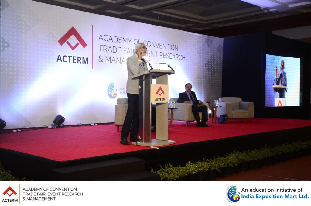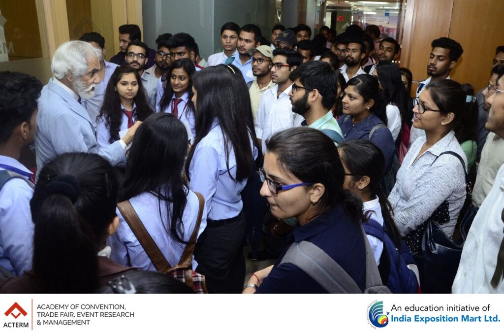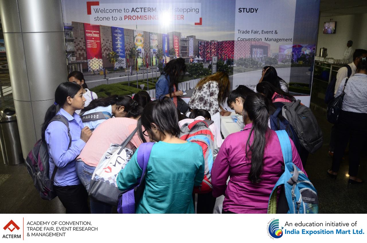The Grand Launch of ACTERM (Academy of Convention, Trade Fair, Event Research & Management), an initiative of India Exposition Mart Ltd was a tremendous success. Over 500 students and 75 faculty members from 20 colleges of Greater Noida and Noida were present for the launch. The session was addressed by Mr. Rakesh Kumar, Chairman, India Expo Centre (sitting at the centre), Mr. Sunil Sethi, President (Academics) (sitting at the right), ACTERM and Mr. Pinakie Kansabanik, Dean, ACTERM (sitting at the left).
